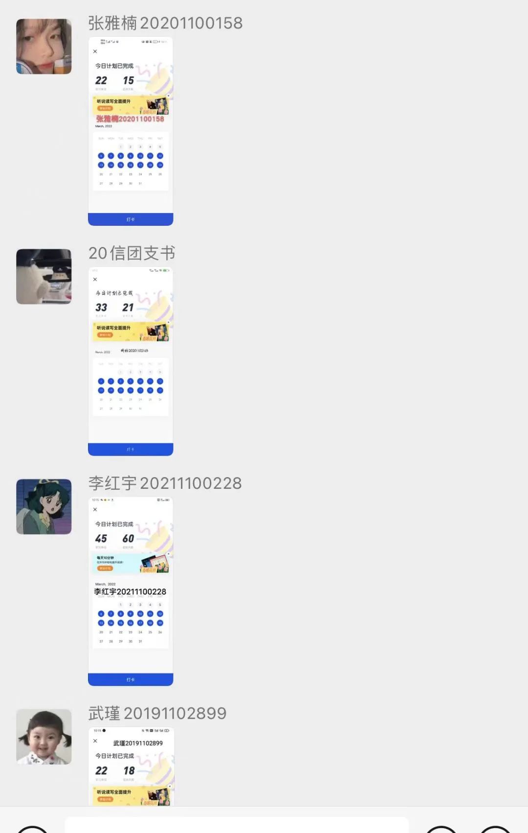 为了丰富学生的居家学习生活,提高学生的学习自觉性,新葡的京集团35222vip开展了“学习解疫,提升有我”的英语单词打卡活动,150名学生积极响应活动,进行打卡学习。